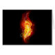 Pena de pavão brilhante feita de fogo e chamas sobre fundo negro.