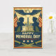 This Memorial Day design evokes the power and solemnity of a historic civic poster, honoring service across generations. Two silhouetted service members—one in a World War–era helmet and the other in a dress uniform—face one another in quiet recognition, representing continuity of duty and sacrifice. Between them rises a monumental memorial with an obelisk and classical structures, symbolizing national remembrance. Above, a broad-winged eagle soars through radiant sunburst rays, flanked by American flags that frame the composition. Laurel branches and stars reinforce themes of honor, valor, and eternal gratitude. Rendered in heritage blues, golds, and muted reds, the artwork conveys dignity, unity, and reverence.