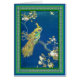 Um cartão elegante feito de uma imagem de uma matéria têxtil antiga de um pavão que empoleira-se em uma árvore da flor de cerejeira.