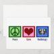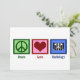 Um sinal de paz, coração e um raio-x. Um cartão fofo para um radiologista. Cartões Paz Amor Radiologia.