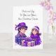 Cartão de Natal bonito. Adoráveis garotos vintage em roupas velhas roxas.