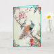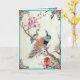Uma bela carta com a imagem de um antigo têxtil bordado japonês de um par de pavões tocados num galho florescente de ameixa.