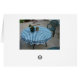 A fotografia bonita do verão, de uma placa de pedaços do melão na parte dianteira, e uma mesa de pátio ajustada sobre para trás, decoram este cartão, vazio para dentro, para você possuem a mensagem pessoal