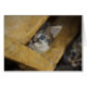 doce gato tímido escondido atrás de um banquinho de madeira - o gatinho tem um pouco de medo da câmera