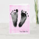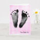 Novas pegadas de bebê em fundo cor-de-rosa.