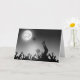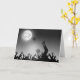 Formandos da silhueta multidão com bonés e pegadas jogadas em uma lua de cheio no céu para parabéns de graduação