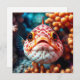 Um cartão de vazio com um peixe fofo se aproxima só porque é fofo! Um peixe branco e laranja com coral laranja.