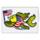 O peixe da bandeira americana, Sparky os peixes está guardarando e comemoração da bandeira americana 4o julho