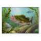 Um peixe-base de boca grande num cenário quase mágico de erva e areia espumante. Pintura a óleo por Amanda Diehl, Designs Paxdomino.