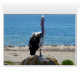 Em destaque está um pelicano em uma rocha de praia que se virou, considerando o que você quer.