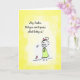 Um pensamento bonito de você carda para sua irmã com um desenho dos desenhos animados de uma menina que guardara uma flor cor-de-rosa, olhando uma borboleta azul, moldada com um fundo amarelo. O cartão lê: Hey irmã, aposta você não pode supr o que é hoje! É meu pensamento especial de você dia.