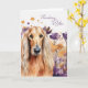 Pensando em você saudando os amantes de cães e especialmente aqueles que adoram os Afegãos Hounds. Uma ilustração de um campo floral em pares de matizes roxos ricos com uma mensagem divertida.