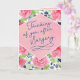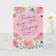 Deixe alguém saber que você está pensando neles após a cirurgia com este design de tipografia em estilo caligráfico apresentando a mensagem, "Pensando em você após a cirurgia". O design apresenta um fundo de aquarela floral e moldura de aquarela rosa. O interior pode ser personalizado com sua mensagem. Enviando votos calorosos para uma recuperação completa e rápida. Espero que você se cuide até lá e encare as coisas um dia de cada vez! Estou torcendo por você a cada passo do caminho!