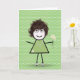 Garota bonitinha com margarida, cabelo, colar de pérolas, tênis e óculos em um fundo de bolinhas verde e branco para pensar em você.