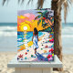 Um doce cartão que deixa um amigo saber que você está pensando sobre eles e se conectando. A frente tem uma bela ilustração do ai feita numa pintura a óleo prejudica o estilo. Uma mulher caminhando na praia entre palmeiras, flores tropicais, ondas de turquesa, vidro marinho e conchas.