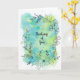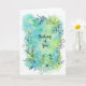Flores desenhadas à mão com caneta e tinta sobre um fundo de respingos de aquarela azul, verde e azul-turquesa. Deixe alguém saber que você está pensando neles com este cartão alegre. O interior do cartão é em branco com muito espaço para os seus próprios sentimentos. Envie um sorriso hoje.