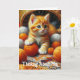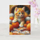 Pensar em você e esperar que tudo seja um bom cartão de amizade. Você pode personalizar o texto se quiser ou deixar. Gato de laranja bonito brincando num balde de jardim.