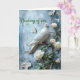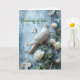 Pensando em você, condolências, cartão de simpatia. Pombo com flores brancas em um fundo azul claro, com 'pensamento' editável na frente e 'mensagem' editável dentro para suas próprias palavras.