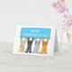 Quatro gatos de desenho animado segurando um grande sinal azul sobre suas cabeças que diz "Pensando em você".