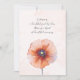 Diga aos seus amigos ou familiares que estão pensando neles no aniversário da perda de um ente querido. Esta placa de compaixão plana de 5" x 7" tinha uma papoila laranja de cor d'água solteiro na frente com a mensagem "Onde uma bela alma esteve, há um rastro de belas memórias." O verso tem espaços reservados para uma mensagem opcional, fechamento e nomes. Deixe qualquer um ou todos esses vazios se preferir escrever manualmente uma mensagem ou assinatura pessoal.