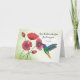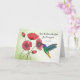 Um beija-flor está se alimentando de uma flor vermelha do cosmos. Esta imagem de aquarela oferece alegria e paz enquanto você deixa alguém saber que você está pensando neles e agradecendo a Deus por eles.
