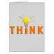 Um design simples que diga "pensa" com uma ampola que pontilha a letra "mim" em amarelo e na laranja. Há umas linhas onduladas em torno do bulbo que poderia discutìvel representar o cabelo unkempt de Albert Einstein.
