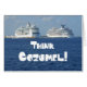 Vista do Caribe com navios de cruzeiro atracados em Cozumel com a mensagem: Pense em Cozumel!