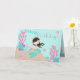 Pequena e doce sereia debaixo do mar com conchas marinhas, peixes, anêmona, recifes de corais, e cartão de peixes estelares.
