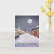 Este cartão de Natal apresenta uma cena mágica de neve numa pequena cidade no Natal.