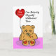 Sou o "Bearme-me Sem ti", cartão de boas-vindas em papel para um primo que estás a perder. Adicione o nome do seu primo à área de texto do coração vermelho para um cartão de saudação personalizado. Ilustração de um urso fofo segurando em um balão vermelho. Arte, imagem e direitos de autor © Shoaff Ballanger Studios.