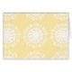 Esta mandala branca senta-se sobre um fundo amarelo claro. As cores são felizes e pacíficas. Parte da coleção Kowas Mandala.