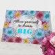 Descubra a alegria da expressão pessoal com nosso belo cartão de saudação dobrado, uma canvas de criatividade disponível exclusivamente em Zazzle.com. O cobrir da frente do cartão é uma celebração da paleta da natureza, apresentando um buquê espantoso de flores desenhadas à mão num caleidoscópio de cores — azuis, pinças e amarelos ganham vida, convidando o olho a dançar em cada pétala. Central para essa fantasia floral é a frase empoderadora, "Permita-se sonhar com o BIG", feita em uma fonte tão elegante quanto a mensagem é inspiradora. À medida que você desdobra o cartão, uma canvas vazio se revela, aguardando ansiosamente os pincelados de suas palavras. Este espaço é seu para preencher sentimentos sinceros, versos poéticos, ou memórias queridas, fazer a cada carta um tesouro personalizado que transmite mais do que uma mensagem — ele carregar uma parte de vocês.