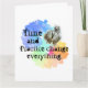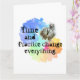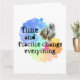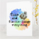Parte da série Motivational mantra, para professores, treinadores, desenvolvimento pessoal, ou se você gosta apenas de imagem e texto. O tempo e a prática mudam tudo, é o que eu ensino aos meus alunos de arte e ginástica. Funciona para qualquer disciplina. Excelente para quem está lutando. Escrita negra decorativa numa nuvem de arco-íris florescente, com um relógio antigo. Design de gráfico original.