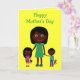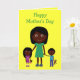Um cartão de saudação amarelo bonito, elegante e alegre, feliz Dia de as mães Feliz, com uma ilustração colorida de uma feliz e sorridente mãe afro-americana com seus dois filhos. Um doce e adorável cartão de diversão para mães para Dia de as mães. Há texto e dentro de ilustração na placa. Também pode ser personalizado para fazer um cartão de aniversário. As cores do texto e do plano de fundo são personalizáveis para atender às suas necessidades, clicando no botão "Personalizar" (para que este cartão seja adequado para outras ocasiões). Há muitas cores e fontes nas quais escolher. Todos os elementos de design podem ser facilmente redimensionados, movidos ou removidos por você. Se precisar de assistência para personalizar seu produto, entre em contato comigo através da minha loja e eu ficarei feliz em ajudar.