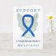 O cartão de anjo da guardiã apresenta a figura de um painel de reconhecimento azul. O cartão indica "Suporte<Your Cause Here>Consciência". Adicione suas próprias palavras ou mensagem opcionais ao cartão de saudação para os anjos personalizados e os técnicos de reconhecimento! Você também pode remover o texto de uma nota de anjo somente de arte. Os cartões de saudação de pintura artística de anjo de consciência azul podem ser personalizados com mensagens personalizadas para fazer com que a conscientização do excelente cause cartões de arte para angariadores de fundos, presentes de conscientização ou outros eventos especiais. Dê a este cartão de arte anjo um presente de fita de consciência para qualquer ocasião.