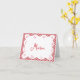 Este cartão de nota, lindamente desenhado, apresenta ilustrações vermelhas encantadoras de símbolos italianos icônicos, como pizza, massa e gelado, enquadrados por uma borda xadrez clássica vermelha e branca.