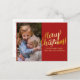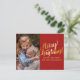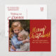 Introduza sua própria foto de família favorita neste modelo do cartão do Natal. Sua foto é colocada no lado esquerdo do cartão. O lado direito é o vermelho do feriado, que apresenta o Feliz Natal de um ouro e os seus nomes de família. Seu endereço do remetente e o desejo lhe do amor e da alegria da paz esta época natalícia são escritos em um design moderno da tipografia. Todo o texto pode ser mudado ou suprimido.