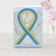 A saudação ou o cartão de anjo da guardiã apresenta a imagem de um painel de reconhecimento azul e amarelo. Fita de sensibilização azul e amarela significa apoio a crianças com Síndrome de Down. Adicione suas próprias palavras ou mensagem opcionais ao cartão de saudação para os anjos-arte personalizados! Você também pode remover o texto de uma nota de anjo somente de arte. Os cartões de saudação de pintura de arte de anjo de consciência azul e amarelo podem ser personalizados com mensagens personalizadas para fazer com que o conhecimento do excelente cause cartões de arte para angariadores de fundos, presentes de conscientização ou outros eventos especiais. Dê a este cartão de arte anjo um presente de fita de consciência para qualquer ocasião.
