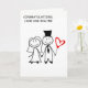 Este lindo cartão é para aquele casal especial no dia do casamento. Ele tem figuras de palito de recém-casados que são minimalistas, mas extremamente impactantes.