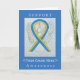 A saudação ou o cartão de anjo da guardiã apresenta a imagem de um painel de reconhecimento azul e amarelo. Fita de sensibilização azul e amarela significa apoio a crianças com Síndrome de Down. O cartão indica "Suporte<Your Cause Here>Consciência". Adicione suas próprias palavras ou mensagem opcionais ao cartão de saudação para os anjos personalizados e os técnicos de reconhecimento! Você também pode remover o texto de uma nota de anjo somente de arte. Os cartões de saudação de pintura de arte de anjo de consciência azul e amarelo podem ser personalizados com mensagens personalizadas para fazer com que o conhecimento do excelente cause cartões de arte para angariadores de fundos, presentes de conscientização ou outros eventos especiais. Dê a este cartão de arte anjo um presente de fita de consciência para qualquer ocasião.