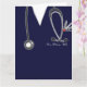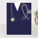 Diversas cartas de graduação de escolas de medicina com esfregões hospitalares com uma faca suíça no bolso. Editar texto para adicionar o nome do médico.