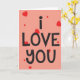 Você pode personalizar este cartão que desenhamos com corações e círculos vermelhos e o texto Eu Te Amo.