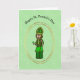 Este cartão apresenta São Patrick na frente com a saudação de "Rua Feliz". Dentro são agrupadas mais cobras à esquerda e canecas verdes de cerveja à direita e ao fundo. Você pode escrever o que quiser. dentro. Desenhado por Sheila Cicchi, Brownielocks.com. Todos os Direitos Reservados.