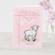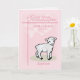 Um doce cartão de batismo para um excelente especial, neta excelente! Um carneiro fica em frente a um fundo cor-de-rosa com nuvens brancas flutuando. Ao lado do borrego há uma cruz que ressalta o nome personalizável! Cartão perfeito para desejar bênçãos e parabéns a uma garotinha recém-batizada.