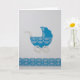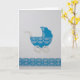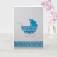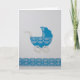 Personalize, carrinho de bebê azul giro, cortado à mão, com rendas brancas, rodas de pérolas para o nascimento ou chá de fraldas de um bebê num cartão de saudação. *Todas as coisas que você vê nos produtos são feitas à mão, mas você deve saber que você consegue uma foto!