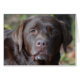 Um labrador de chocolate marrom doce com um rosto solene.
