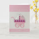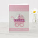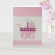 Cartão Personalize a carruagem do bebê rosa e o arco bran