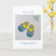 Personalize, azul giro, cortado à mão, pantufas de bebê amarelo com arco de tula, arco branco colado para o nascimento ou chá de fraldas de um bebê com cartão de saudação. *Todas as coisas que você vê nos produtos são feitas à mão, mas você deve saber que você consegue uma foto!