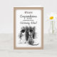 Um esboço preto e branco da parte traseira de um cão e gato está olhando para dentro. Vestem chapéus da graduação enquanto esperam. Um esboço do marrom molda o esboço animal bonito. Personalize este cartão com o nome do formando veterinário para parabéns feitos sob encomenda em uma graduação veterinária.