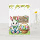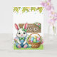 Send a message of love to your family member or friend with this Easter card design with bright colors and an image of a cute white rabbit with Easter eggs. The design can be personalized with a message for your beloved family member or friend! Don't think twice and get yours now.
